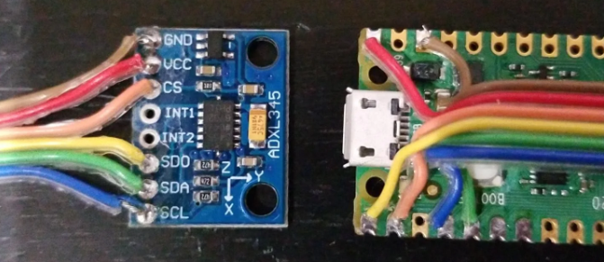 La conexión entre nuestra Pi Pico y nuestro acelerómetro es relativamente sencilla y podéis usar el siguiente esquema como referencia: