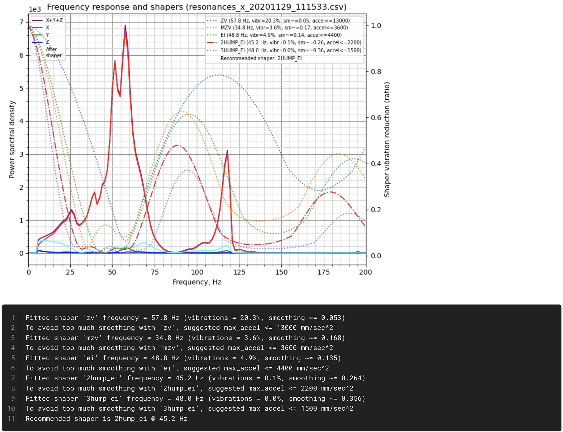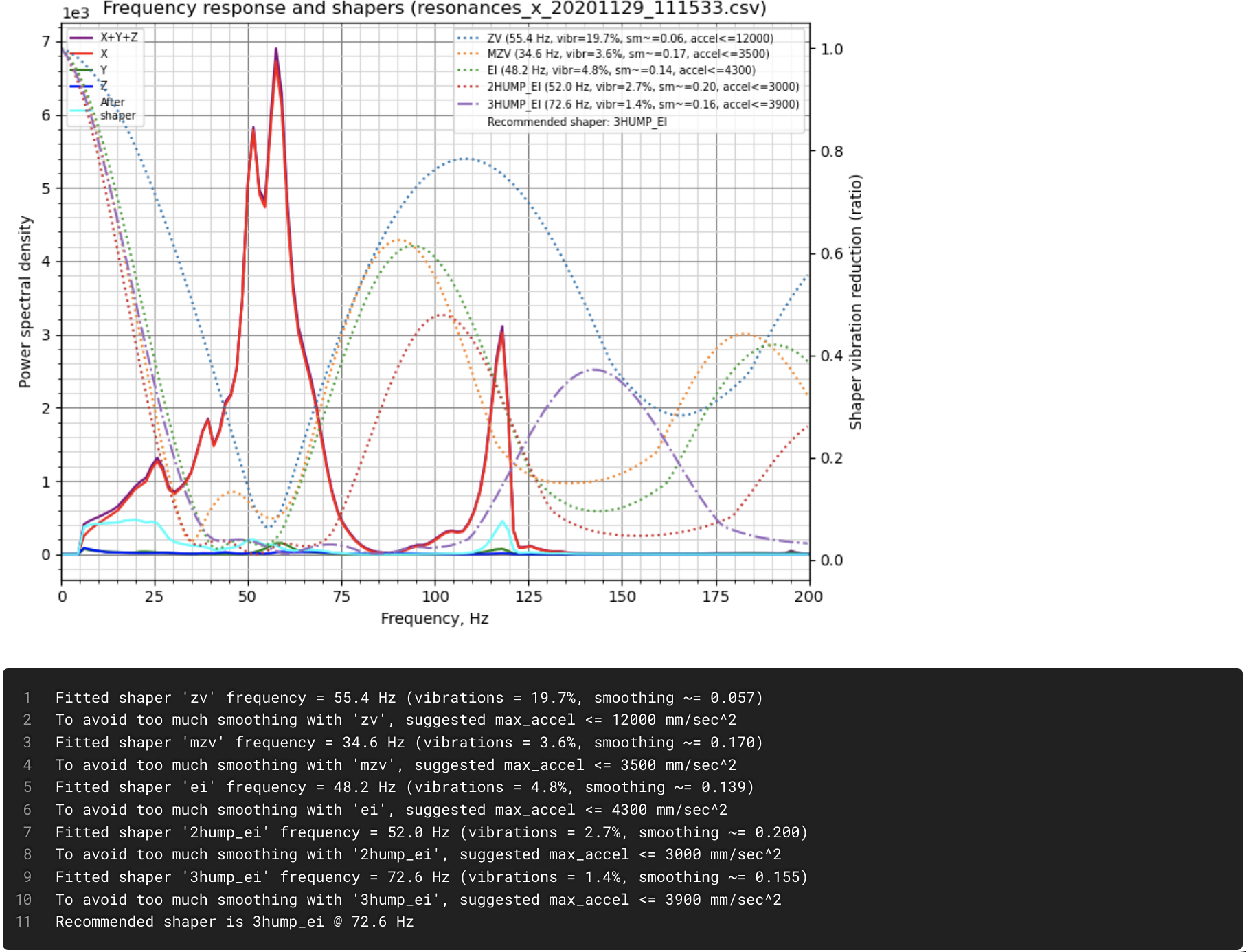 Ahora que ya tenemos identificadas las frecuencias óptimas para nuestra máquina deberemos encontrar el tipo de Input Shaper adecuado para nuestra máquina.