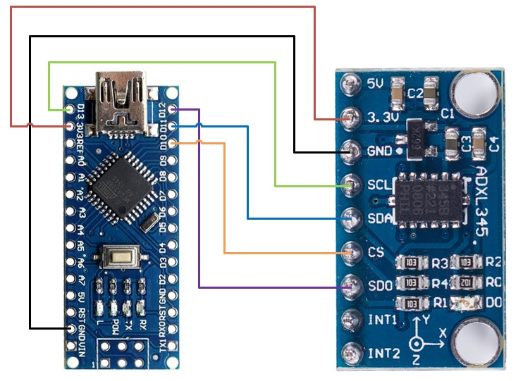 Para poder cablear nuestro acelerómetro seguiremos el siguiente diagrama: