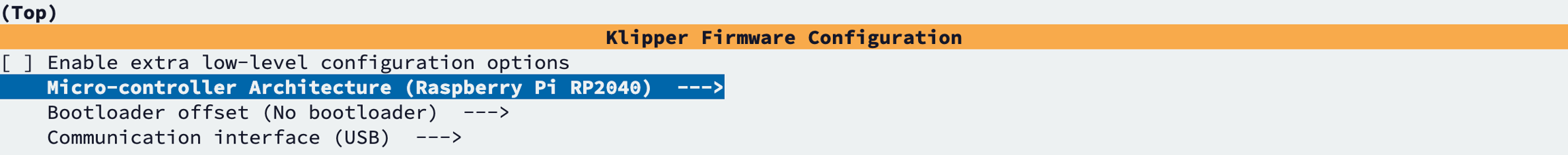 Lanzaremos el comando para preparar nuestro firmware Klipper para nuestra Fysetc Pico: