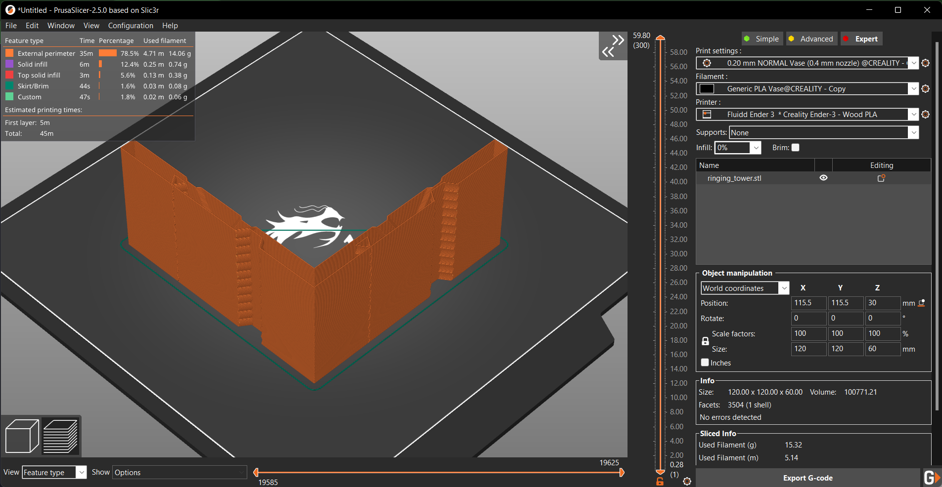 Perímetros en 1 y a ser posible imprimir en modo vaso, 2 máximo si no usamos modo vaso