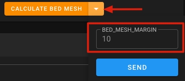 {action_respond_info("mesh_min: %s,%s" % (BED_MESH_MIN_X,BED_MESH_MIN_Y))}Para lanzar la macro iremos a nuestra UI y podremos lanzarla ajustando el valor BED_MESH_MARGIN que es un margen de seguridad a aplicar alrededor de nuestra área de mallado, por defecto usará 10mm: