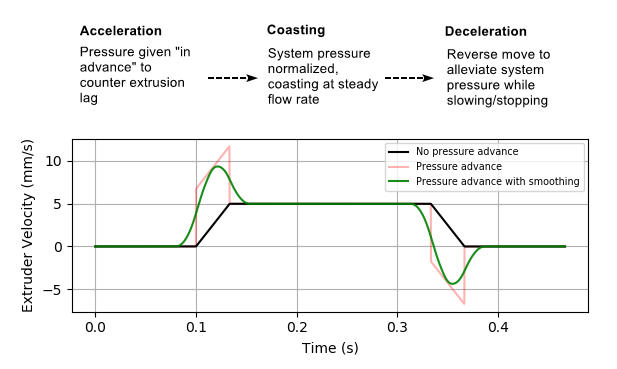 Estas mejoras las realiza aplicando un extra de presión en la extrusión durante las aceleraciones, mientras que hace lo contrario en las desaceleraciones.