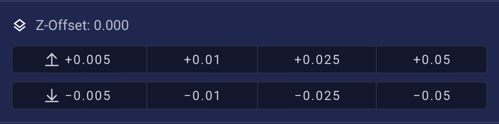 Dentro de nuestro interfaz Mainsail/Fluidd, normalmente en la sección toolhead, usaremos los controles de babystepping para ajustar en tiempo real la altura de primera capa a nuestro gusto.