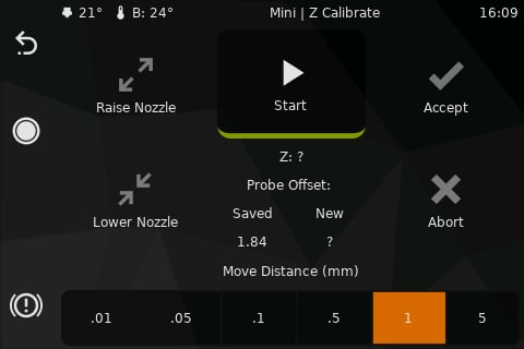 Si disponemos de una pantalla nativa de nuestra impresora configurada o tenemos KlipperScreen podremos tener un asistente para el proceso.