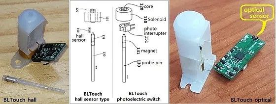 Un BlTouch es un sensor de nivelación que tiene un sensor de efecto Hall, determina la proximidad basándose en campos magnéticos, además incluye una bobina que permite un control del pin de sondeo y en su instalación en la máquina hemos de asegurarnos que el pin (recogido) se encuentre entre 2.3 y 4.3 mm de la punta del nozzle.