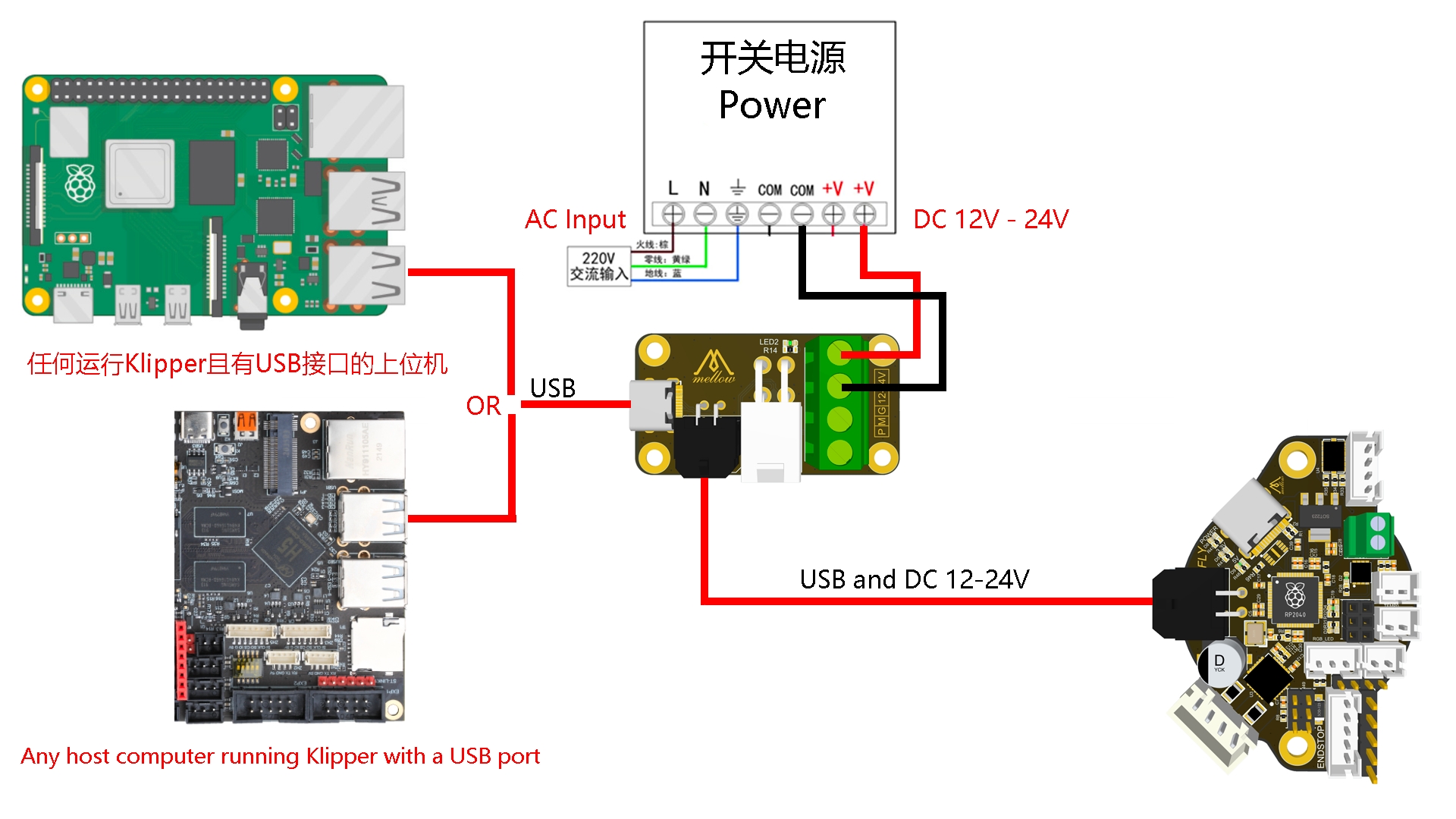 En impresoras con un host Klipper este es el cerebro y donde los beneficios de redundancia de CAN no van a aplicar además en esta arquitectura la latencia es crítica por lo que la comunicación USB en lugar de CAN nos va a aportar más beneficios eliminando cuellos de botella que puedan limitar el funcionamiento de nuestra máquina.