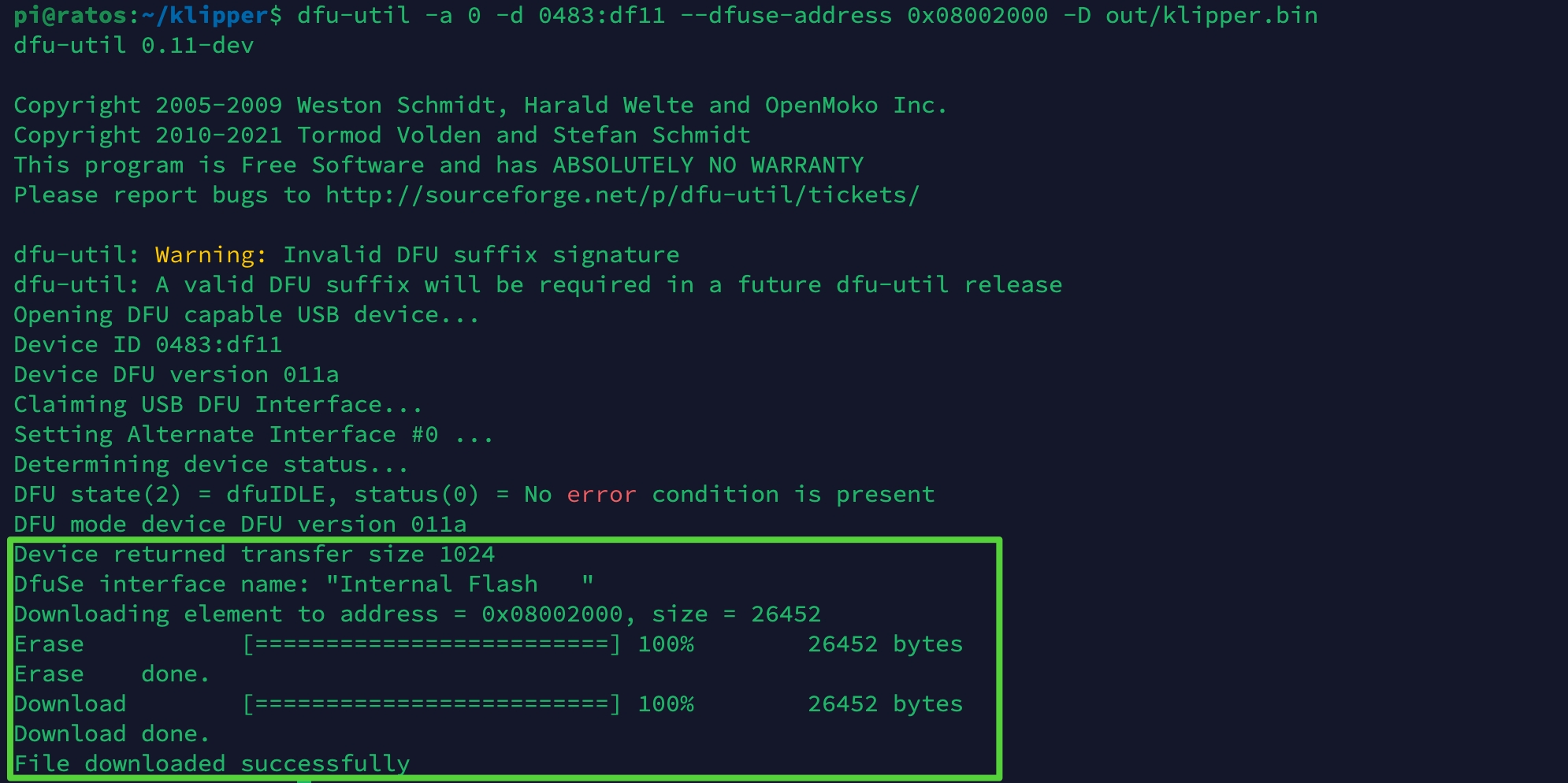 dfu-util -a 0 -d 0483:df11 --dfuse-address 0x08002000 -D out/klipper.bin