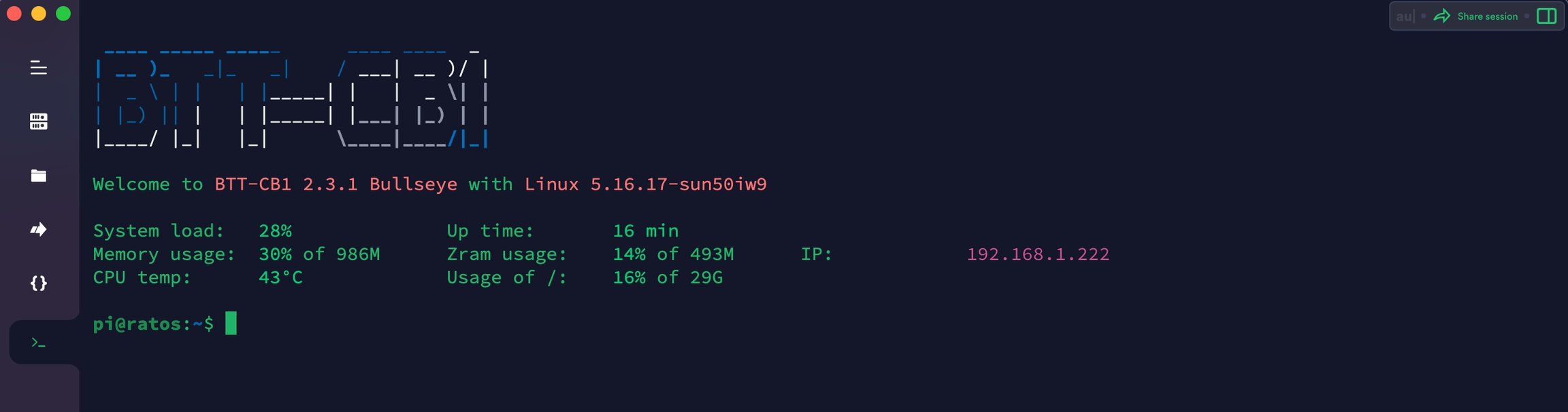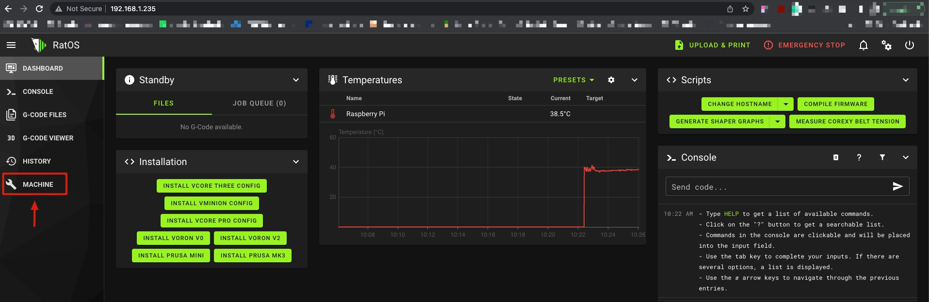 Utilizando RatOS que tiene algunas ventajas, y desventajas dependiendo de tu nivel de conocimientos en Klipper, como la pre-instalación de varios componentes, compatibilidad con varias electrónicas e impresoras con pre configurados y macros por defecto.