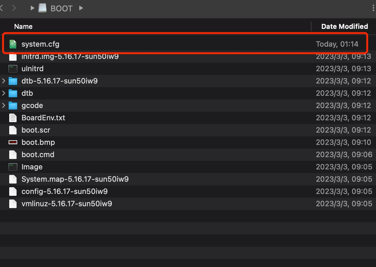 Una vez finalizado el proceso y desde el explorador de nuestro ordenador accederemos a nuestra SD donde tendremos una partición llamada BOOT. En esta encontraremos un fichero system.cfg