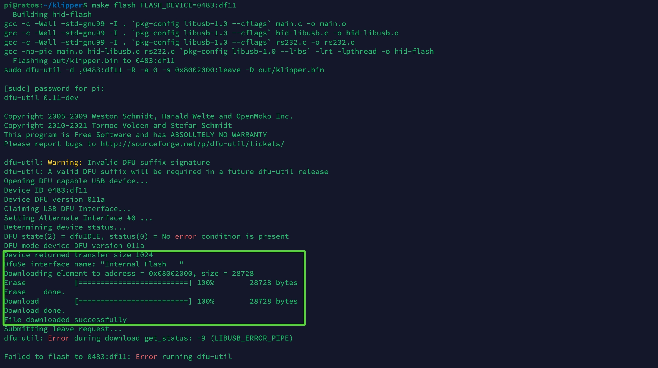 El siguiente paso será aplicar el firmware a la electrónica. Para ello utilizaremos el modo DFU de estas electrónicas para hacerlo sin salir de nuestro entorno SSH.