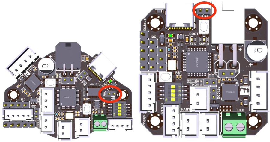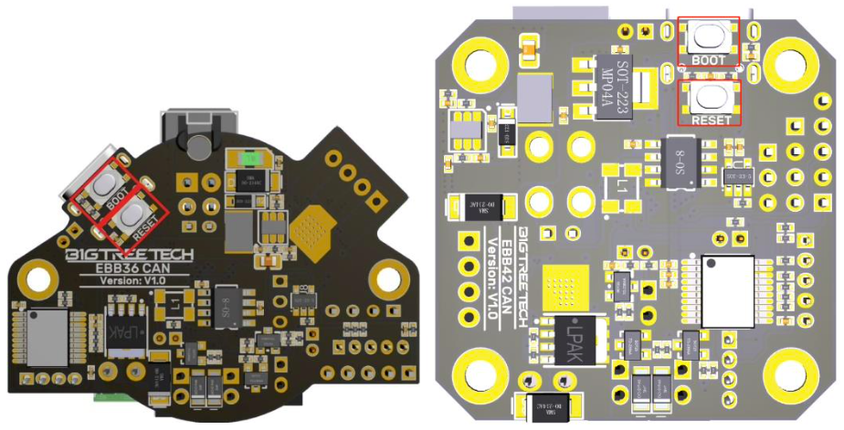Para los modelos EBB36/42 v1.1 al entrar en modo DFU se activa el pin del calentador del hotend. Si tenemos alimentada nuestra EBB con la fuente de la impresora puede calentar el hotend sin ningún tipo de protección lo que puede causar daños importantes!!!