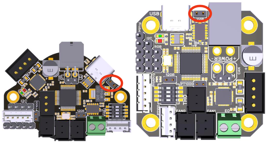 Comenzaremos colocando el jumper VUSB para que permita encender la EBB mediante USB