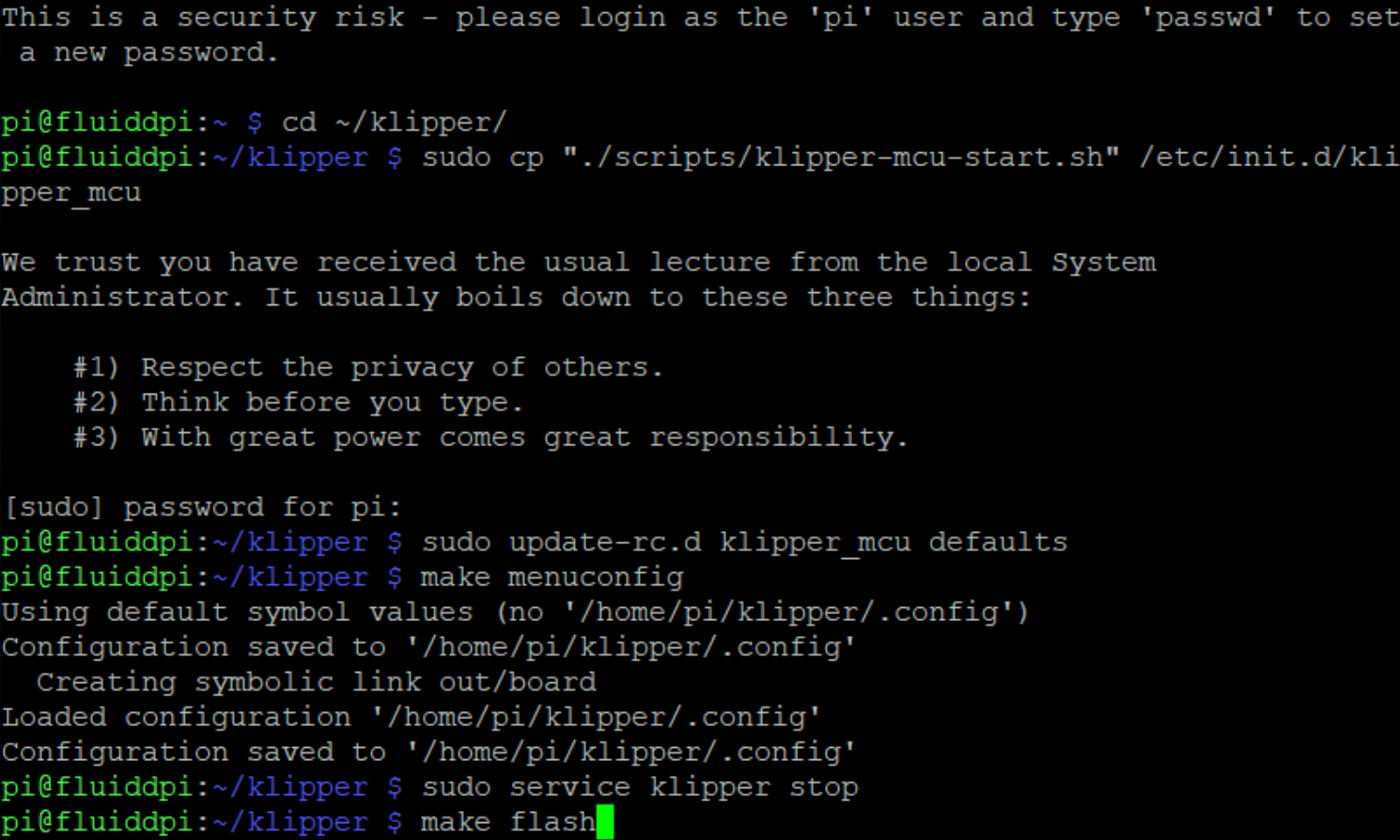 Ejecutaremos el comando siguiente para crear y aplicar el firmware Klipper para nuestro Host: