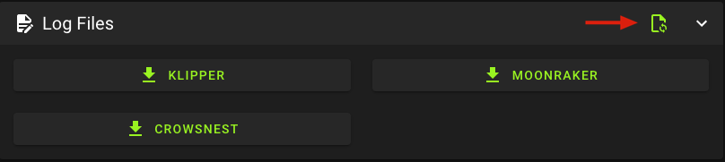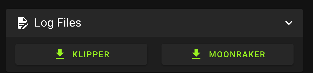 La forma mas sencilla es desde la UI, en el caso de Mainsail usaremos el apartado MACHINE y dentro de esta en la seccion Log Files podremos descargar logs de Klipper y Moonraker