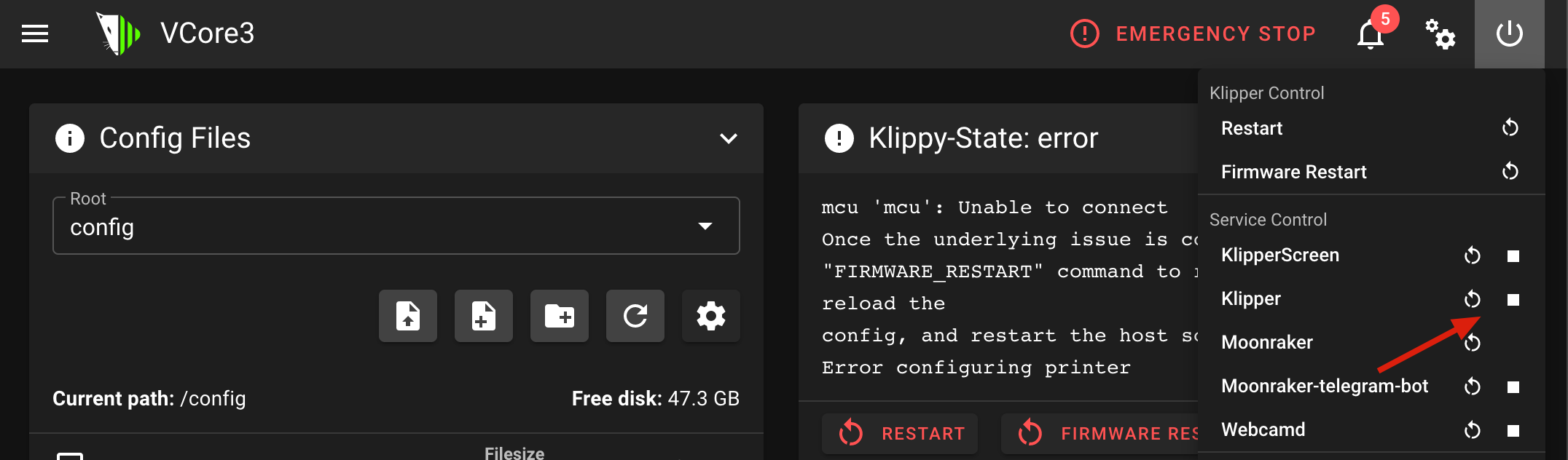 En ocasiones los servicios de Klipper pueden no arrancar correctamente por diferentes causas.