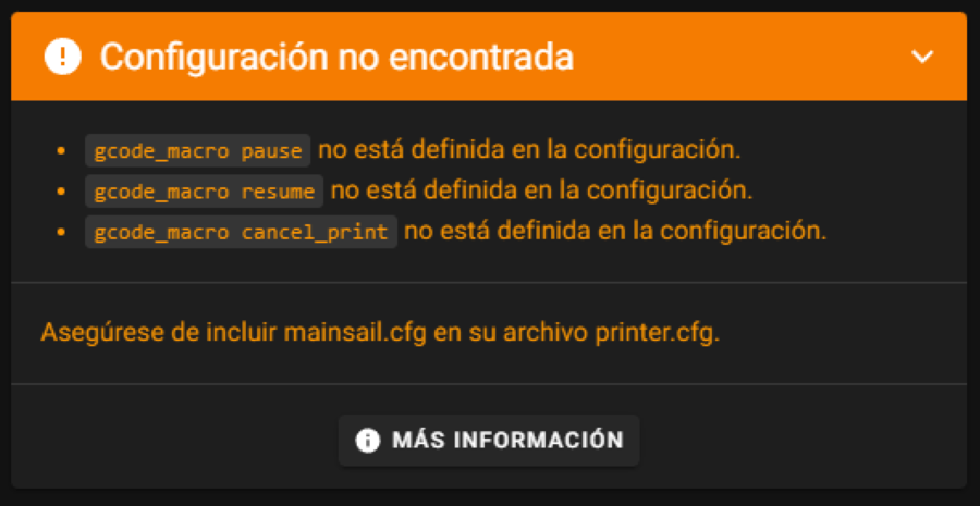 Para que Mainsail funcione correctamente nuestro printer.cfg, o alguno de nuestros includes, ha de añadirse ciertas secciones al mismo.